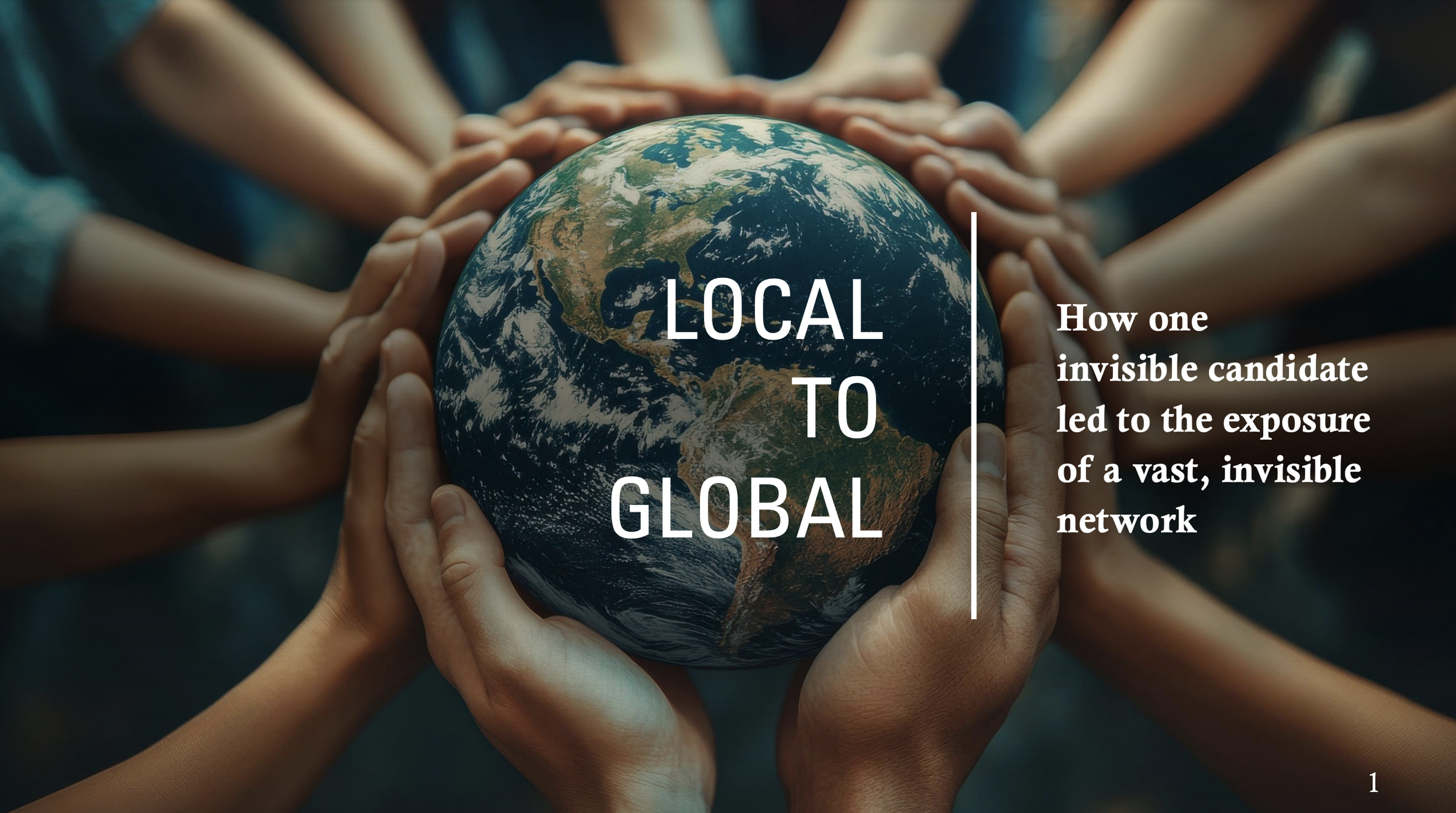 Local to Global: How one invisible candidate led to the exposure of a vast, invisible network